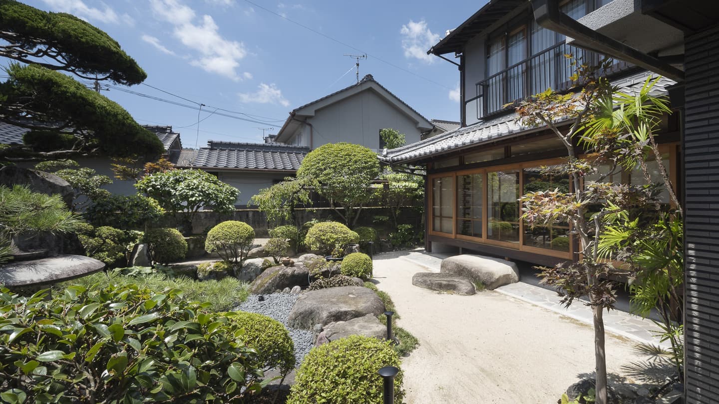 立派な日本庭園を抱く外観は、その良さを保つために木製ガラス戸以外は手を加えず補修程度にとどめています。