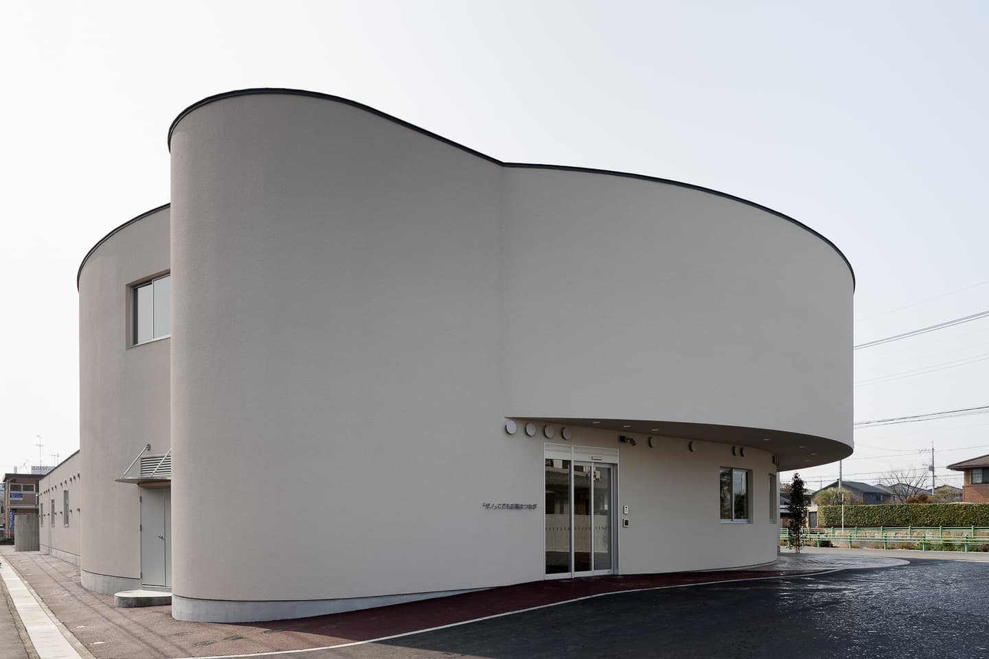 民間移管と同時に移転新築した保育所。運営するのは地域の障害者施設事業に長年携わってきた社会福祉法人。障害者の放課後デイサービスを併設した複合施設に生まれ変わりました。保育所の名前はそのまま残し、2階部分に放課後デイサービスの機能を設け、利用者の完全分離ができるようにしています。地方では車での送迎が主流なので、送迎車両をスムーズに捌くために、駐車場へは一方通行としました。近隣の歩行者と共存できるように、敷地の一部を歩道として活用できます。